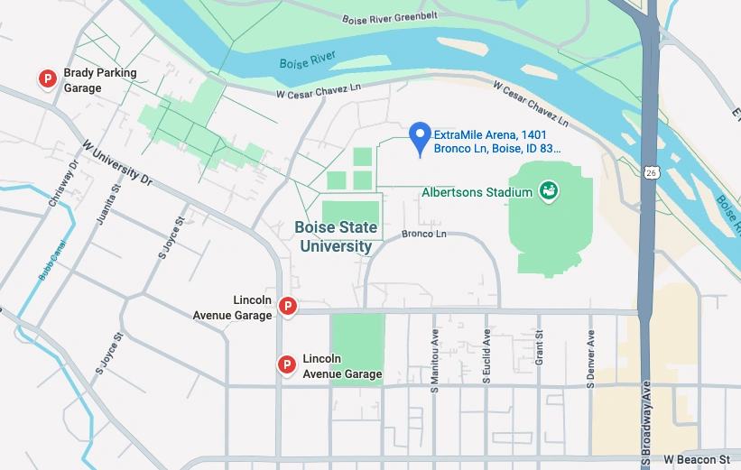 Please allow sufficient time before the event for your travel and parking. Boise traffic is often busier around ExtraMile Arena in relation to events.